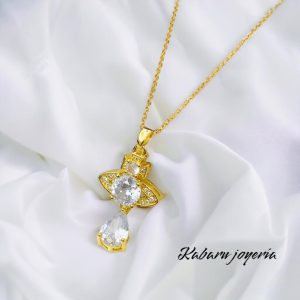 Collar dorado acero inoxidable saturno piedra blanca
