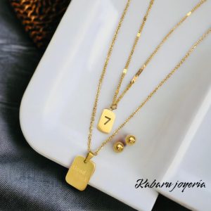 Conjunto dorado 2 lienzos acero inoxidable placa 7