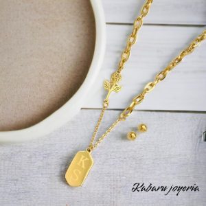 Conjunto dorado acero inoxidable flor